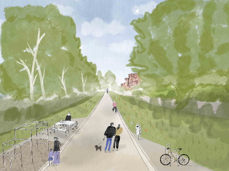 Als Ergebnis soll der NRA als Abschnitt des Grünen Rings nutzbar gemacht und mit den Abschnitten Hahneberg und Langes Becken verknüpft werden. Geplant ist ein Fußweg mit begleitenden Fitnessangeboten, der u.a. den Schulweg vieler Kinder zur Grundschule am Amalienhof erleichtern soll. Der geplante Weg soll mindestens drei Meter breit und vollständig barrierefrei sein. Als Rückzugsort für Tiere werden entlang des Weges neue Gehölze gepflanzt und Benjeshecken angelegt.