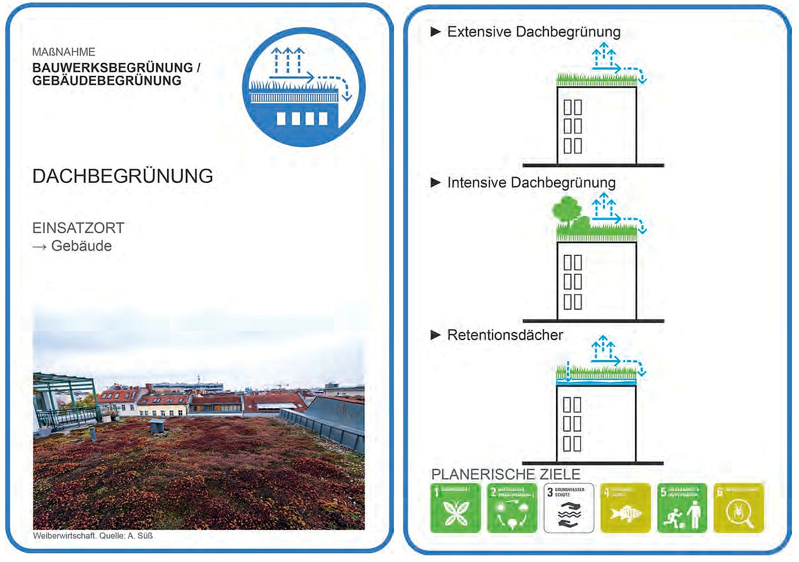 Beispiel eines Paares von Maßnahmenkarten zur Dachbegrünung