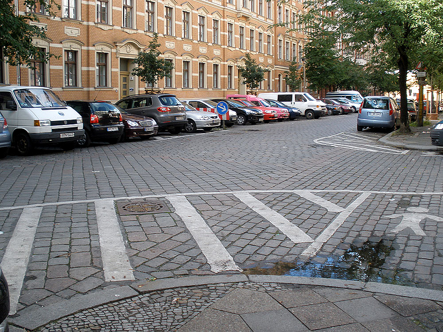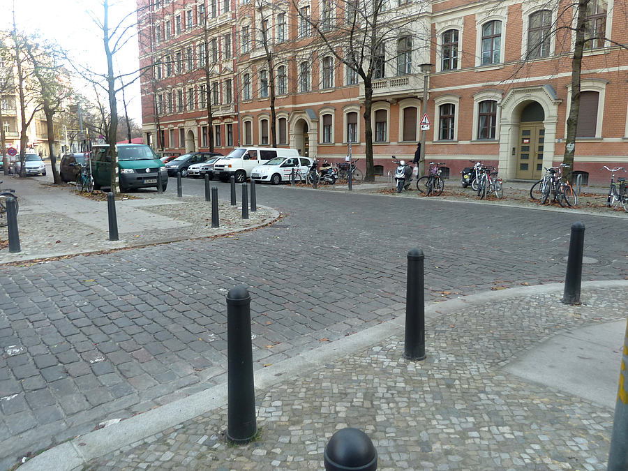 Gehwegvorstreckungen erleichtern das Überqueren der Greifenhagener Straße
